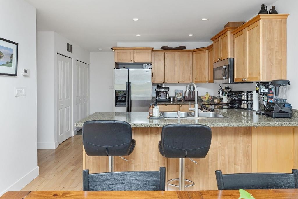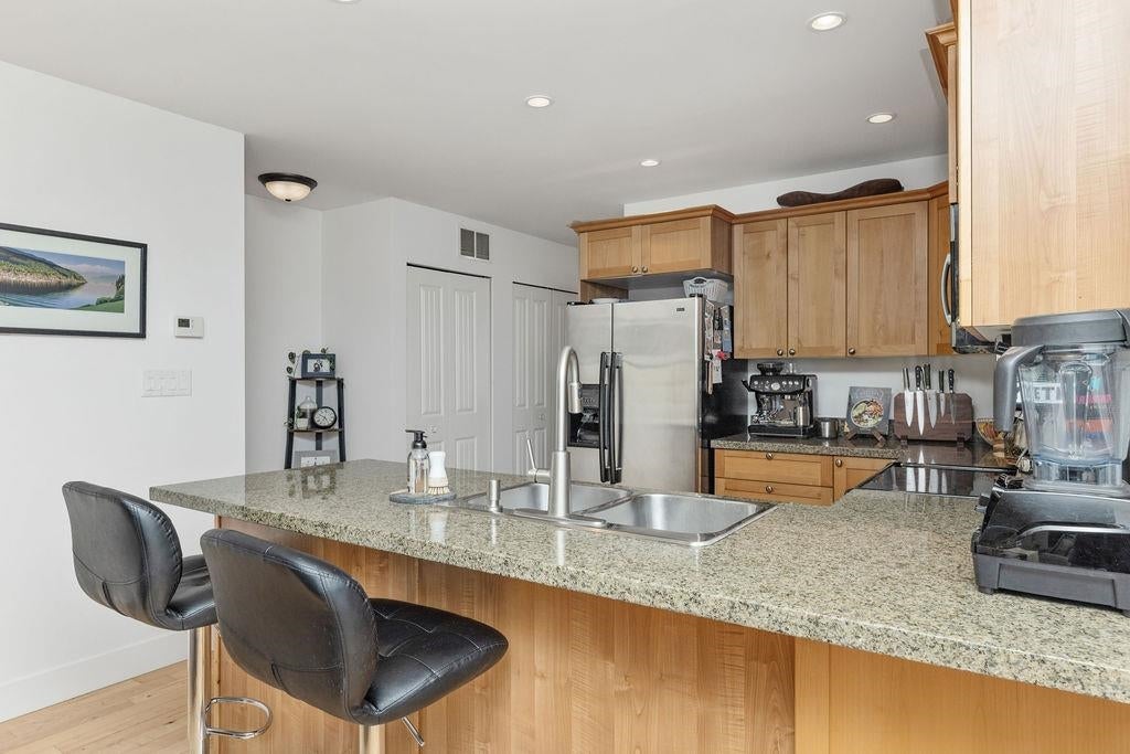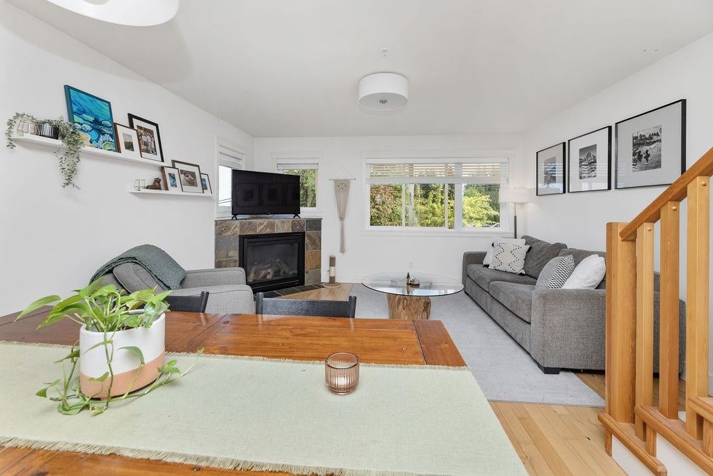 End unit townhouse with ocean and mountain views! This spacious home in the sought after Islandview Lanes development offers a thoughtful floorplan - on the main floor you will find an eat-in kitchen with granite counters, maple hardwood flooring, and a south facing living room with plenty of windows to take in the views. Upstairs offers 2 generous sized bedrooms, with a patio off of the bright and airy primary. The fully finished walkout basement offers incredible flexibility, featuring a large recreation/family room. This lower level with separate entrance and covered patio allows for a home business, or it could easily become a third bedroom with its own bathroom. Recently painted, new blinds throughout, and within minutes to shopping, cafes, and beaches. OPEN HOUSE SAT JAN 24 12-2.